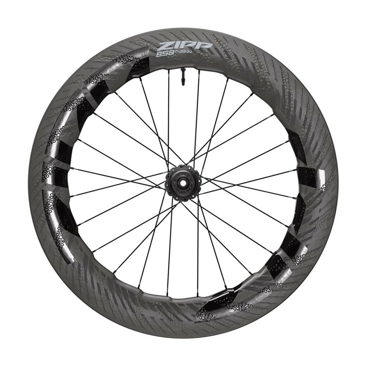 Zipp’s ultimate aero weapon is fast in the wind (thanks to its undulating rim shape) and on the ground (thanks to tubeless). You get the many aero advantages of the 858 NSW Tubeless Disc-brake wheelset with the added benefit of increased cornering grip and compliance with reduced rolling resistance of tubeless. The wheelset’s 18mm internal width is optimized for running wider tires at reduced air pressure. The 858 NSW’s undulating rim shape, our proprietary Sawtooth™ profile, takes design cues from nature for our highest performing wheel when it comes to aero efficiency and crosswind stability. These structures inspired Zipp advanced development engineers to, for the first time, systematically apply biomimicry to solve the complex challenge of designing a wheel, with the undulating Hyperfoil™ nodes, that reduces both aerodynamic drag and side force. When it comes time to scrub off speed or stop, disc brakes will give you the confidence and stopping power you need. Simply put, the 858 NSW Tubeless Disc brake is ideal for those focused on triathlon, time trials, or aggressive road riding. The 858 NSW’s Cognition DB V2 Hubset is re-engineered with Axial Clutch V2™ for quicker engagement and lower friction Every time a conventional hubset starts to coast, friction within the freehub ratchet mechanism works like a drum brake to slow the rider down. The drag between the hub shell and driver body during coasting is considered as efficiency loss, especially for road wheels. The solution? The rear Cognition DB V2™ hub with AxialClutch V2™ technology reduces drag by disengaging the ratchet mechanism when coasting. The AxialClutch V2’s™ wave spring acts to re-engage the ratchet mechanism quickly and consistently once the rider starts pedaling. The hubset also is lightweight and durable.